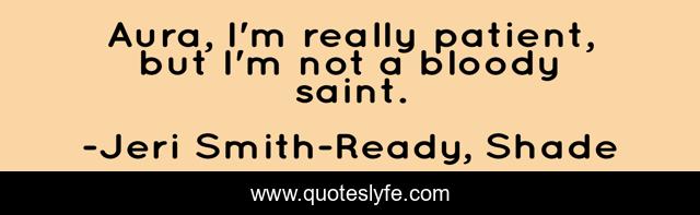 This page presents the quote "Aura, I'm really patient, but I'm not a bloody saint.". Author of this quote is Jeri Smith-Ready, Shade. This quote is about faith, love, patience, hope, affection, wait,.