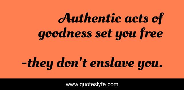 "they don't enslave you. Quotes." Quoteslyfe.com, 2025. Sat. 06 Dec. 2025. <https://www.quoteslyfe.com/quote/Authentic-acts-of-goodness-set-you-free-221480>.