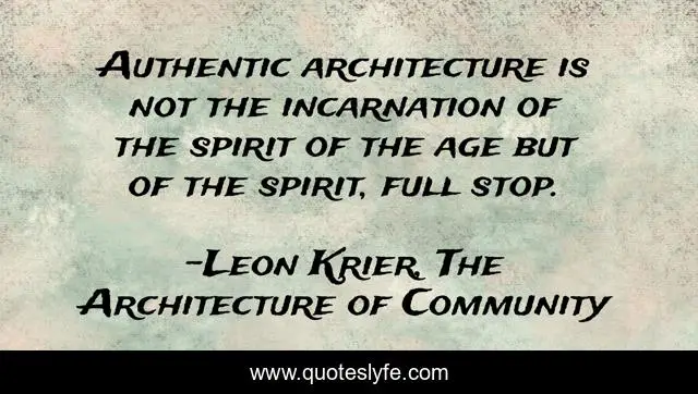 "Leon Krier, The Architecture of Community Quotes." Quoteslyfe.com, 2025. Sat. 06 Dec. 2025. <https://www.quoteslyfe.com/quote/Authentic-architecture-is-not-the-incarnation-of-220031>.