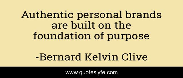 This page presents the quote "Authentic personal brands are built on the foundation of purpose". Author of this quote is Bernard Kelvin Clive. This quote is about personal-branding, purpose, personal-brand, authenticity,.