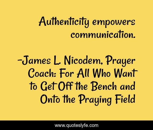 "James L. Nicodem, Prayer Coach: For All Who Want to Get Off the Bench and Onto the Praying Field Quotes." Quoteslyfe.com, 2025. Sat. 06 Dec. 2025. <https://www.quoteslyfe.com/quote/Authenticity-empowers-communication-250498>.