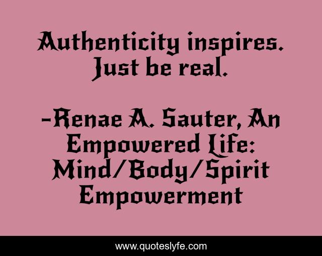 "Renae A. Sauter, An Empowered Life: Mind/Body/Spirit Empowerment Quotes." Quoteslyfe.com, 2025. Sun. 07 Dec. 2025. <https://www.quoteslyfe.com/quote/Authenticity-inspires-Just-be-real-103385>.