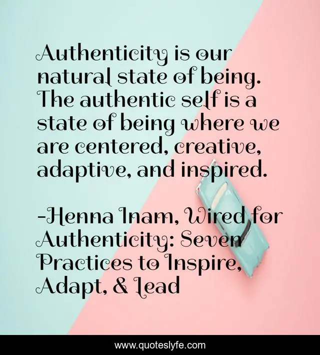 "Henna Inam, Wired for Authenticity: Seven Practices to Inspire, Adapt, & Lead Quotes." Quoteslyfe.com, 2025. Sat. 06 Dec. 2025. <https://www.quoteslyfe.com/quote/Authenticity-is-our-natural-state-of-being-108314>.