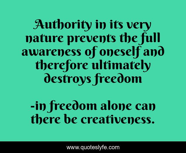 "in freedom alone can there be creativeness. Quotes." Quoteslyfe.com, 2025. Tue. 09 Dec. 2025. <https://www.quoteslyfe.com/quote/Authority-in-its-very-nature-prevents-the-108371>.