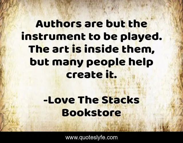 This page presents the quote "Authors are but the instrument to be played. The art is inside them, but many people help create it.". Author of this quote is Love The Stacks Bookstore. This quote is about writers, authors,.