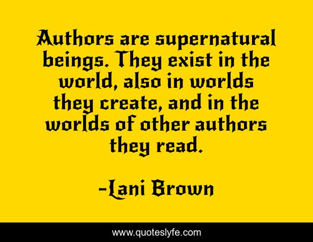 This page presents the quote "Authors are supernatural beings. They exist in the world, also in worlds they create, and in the worlds of other authors they read.". Author of this quote is Lani Brown. This quote is about authors, fiction, writing,.