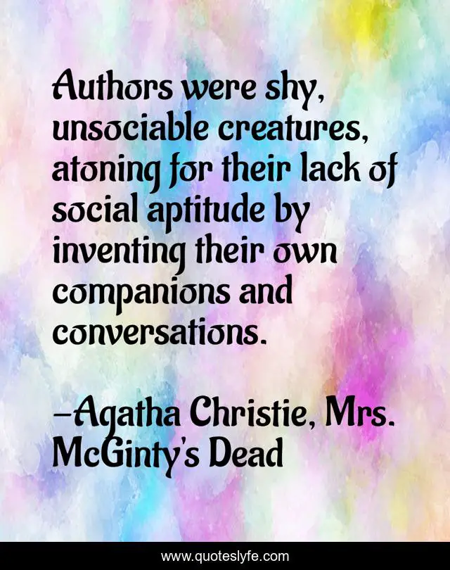 This page presents the quote "Authors were shy, unsociable creatures, atoning for their lack of social aptitude by inventing their own companions and conversations.". Author of this quote is Agatha Christie, Mrs. McGinty's Dead. This quote is about mystery, social-life, author, whodunnit, authors,.