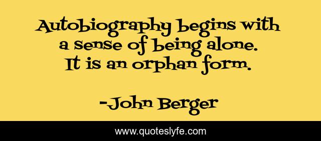 This page presents the quote "Autobiography begins with a sense of being alone. It is an orphan form.". Author of this quote is John Berger. This quote is about autobiography, life, john-berger, self, writing,.