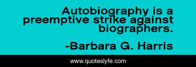 This page presents the quote "Autobiography is a preemptive strike against biographers.". Author of this quote is Barbara G. Harris. This quote is about writers, writing,.
