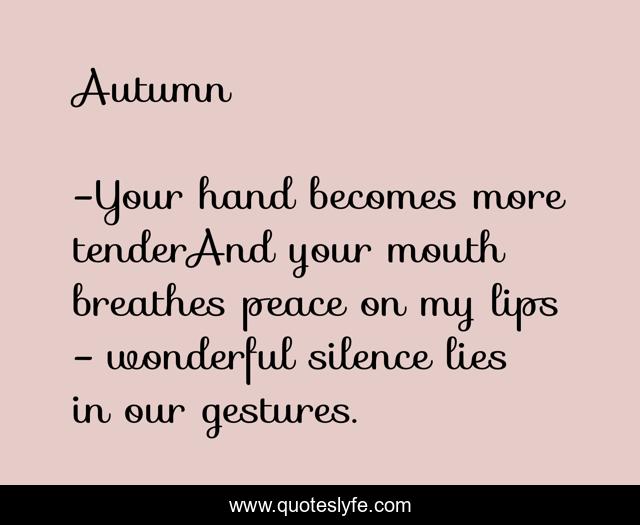 "Your hand becomes more tenderAnd your mouth breathes peace on my lips - wonderful silence lies in our gestures. Quotes." Quoteslyfe.com, 2025. Sat. 06 Dec. 2025. <https://www.quoteslyfe.com/quote/Autumn-73219>.
