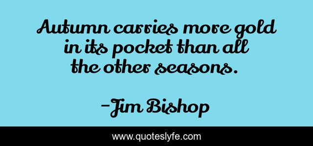 This page presents the quote "Autumn carries more gold in its pocket than all the other seasons.". Author of this quote is Jim Bishop. This quote is about autumn, fall,.