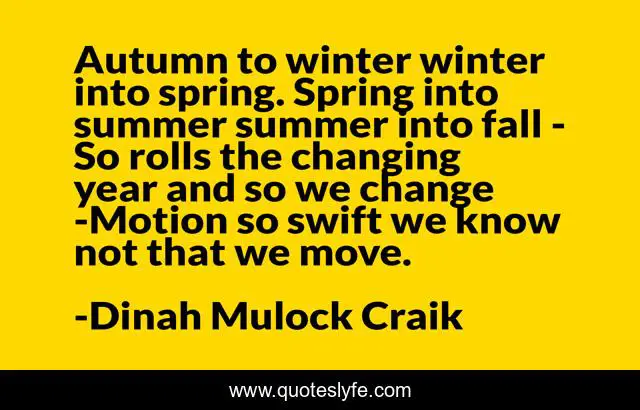 This page presents the quote "Autumn to winter winter into spring. Spring into summer summer into fall - So rolls the changing year and so we change -Motion so swift we know not that we move.". Author of this quote is Dinah Mulock Craik. .
