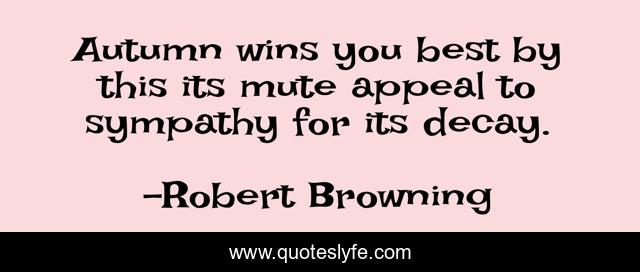 This page presents the quote "Autumn wins you best by this its mute appeal to sympathy for its decay.". Author of this quote is Robert Browning. This quote is about autumn, sympathy,.