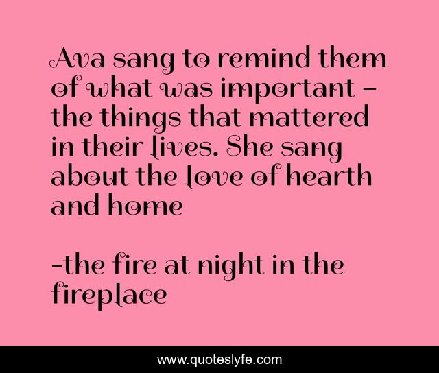 "the fire at night in the fireplace Quotes." Quoteslyfe.com, 2025. Fri. 05 Dec. 2025. <https://www.quoteslyfe.com/quote/Ava-sang-to-remind-them-of-what-230118>.