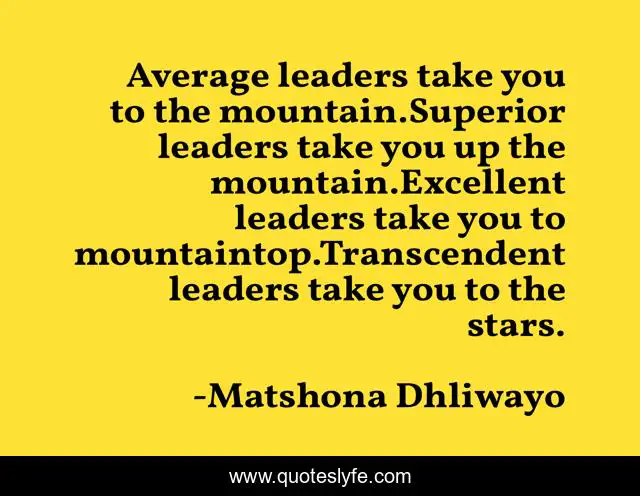 "Matshona Dhliwayo Quotes." Quoteslyfe.com, 2025. Tue. 09 Dec. 2025. <https://www.quoteslyfe.com/quote/Average-leaders-take-you-to-the-mountain-257952>.