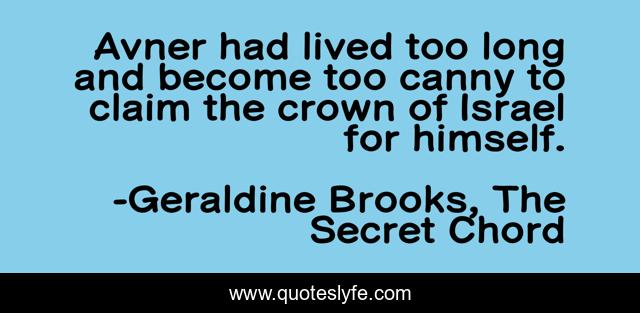 "Geraldine Brooks, The Secret Chord Quotes." Quoteslyfe.com, 2025. Sat. 06 Dec. 2025. <https://www.quoteslyfe.com/quote/Avner-had-lived-too-long-and-become-64891>.