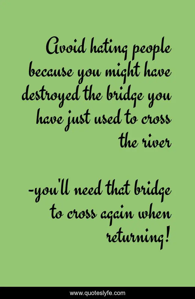 "you'll need that bridge to cross again when returning! Quotes." Quoteslyfe.com, 2025. Sat. 06 Dec. 2025. <https://www.quoteslyfe.com/quote/Avoid-hating-people-because-you-might-have-129802>.