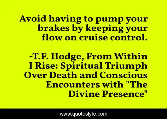 "T.F. Hodge, From Within I Rise: Spiritual Triumph Over Death and Conscious Encounters with "The Divine Presence" Quotes." Quoteslyfe.com, 2025. Mon. 08 Dec. 2025. <https://www.quoteslyfe.com/quote/Avoid-having-to-pump-your-brakes-by-185875>.