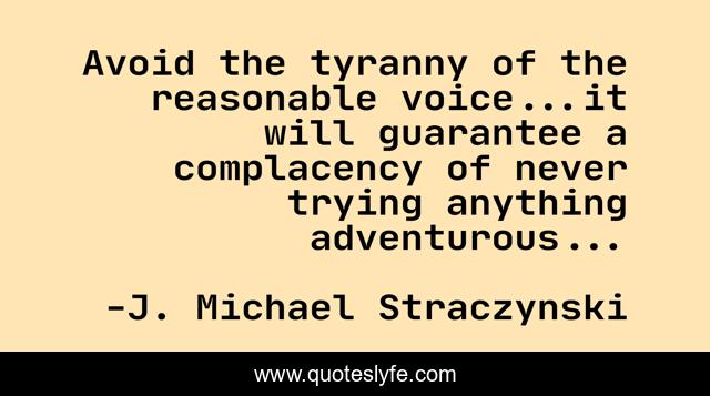 "J. Michael Straczynski Quotes." Quoteslyfe.com, 2025. Sat. 06 Dec. 2025. <https://www.quoteslyfe.com/quote/Avoid-the-tyranny-of-the-reasonable-voice-253804>.