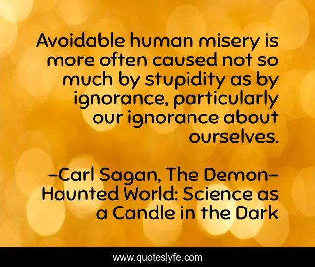 "Carl Sagan, The Demon-Haunted World: Science as a Candle in the Dark Quotes." Quoteslyfe.com, 2025. Mon. 08 Dec. 2025. <https://www.quoteslyfe.com/quote/Avoidable-human-misery-is-more-often-caused-41894>.