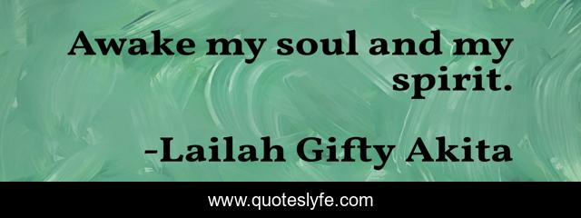 This page presents the quote "Awake my soul and my spirit.". Author of this quote is Lailah Gifty Akita. This quote is about spirituality, awake, soul,.