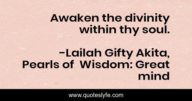 "Lailah Gifty Akita, Pearls of Wisdom: Great mind Quotes." Quoteslyfe.com, 2025. Fri. 05 Dec. 2025. <https://www.quoteslyfe.com/quote/Awaken-the-divinity-within-thy-soul-85527>.