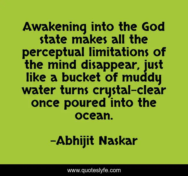 Awakening into the God state makes all the perceptual limitations of the mind disappear, just like a bucket of muddy water turns crystal-clear once poured into the ocean.