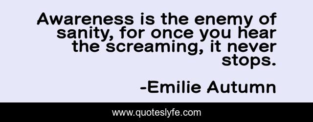 This page presents the quote "Awareness is the enemy of sanity, for once you hear the screaming, it never stops.". Author of this quote is Emilie Autumn. This quote is about awareness, insanity,.