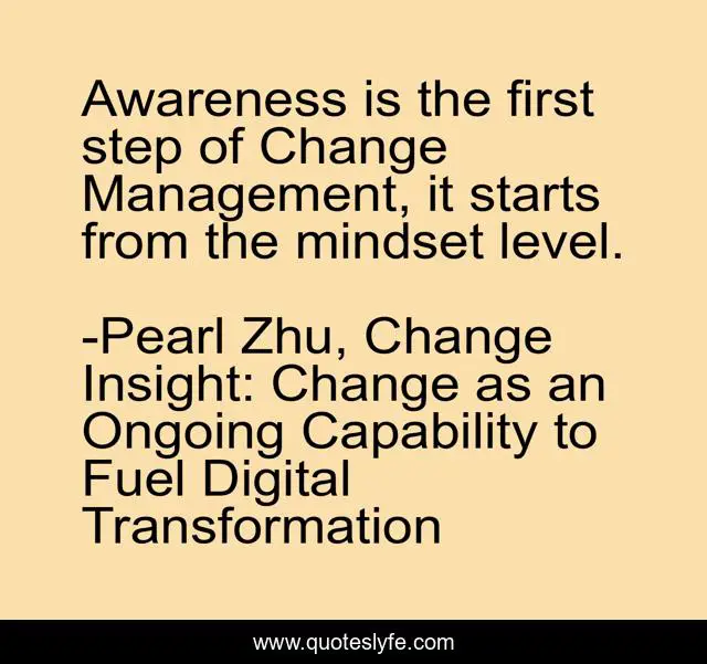 "Pearl Zhu, Change Insight: Change as an Ongoing Capability to Fuel Digital Transformation Quotes." Quoteslyfe.com, 2025. Fri. 05 Dec. 2025. <https://www.quoteslyfe.com/quote/Awareness-is-the-first-step-of-Change-60065>.