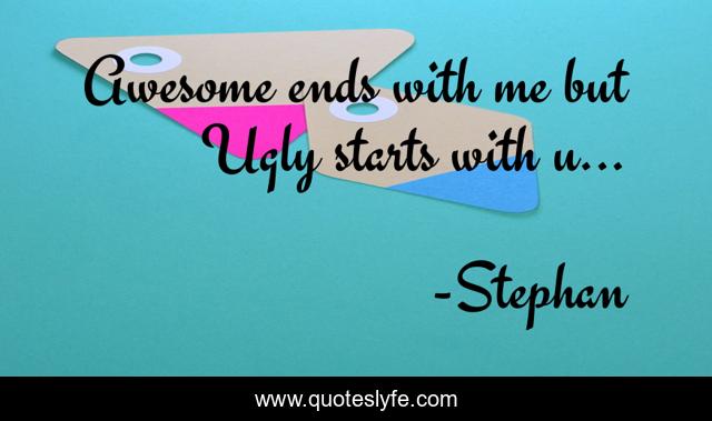 "Stephan Quotes." Quoteslyfe.com, 2025. Sat. 06 Dec. 2025. <https://www.quoteslyfe.com/quote/Awesome-ends-with-me-but-Ugly-starts-41403>.