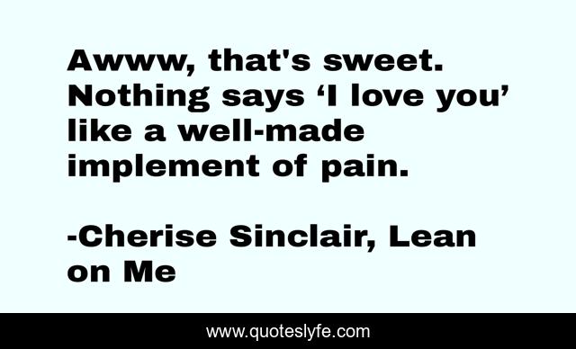 "Cherise Sinclair, Lean on Me Quotes." Quoteslyfe.com, 2025. Mon. 08 Dec. 2025. <https://www.quoteslyfe.com/quote/Awww-that-s-sweet-Nothing-says-I-214144>.