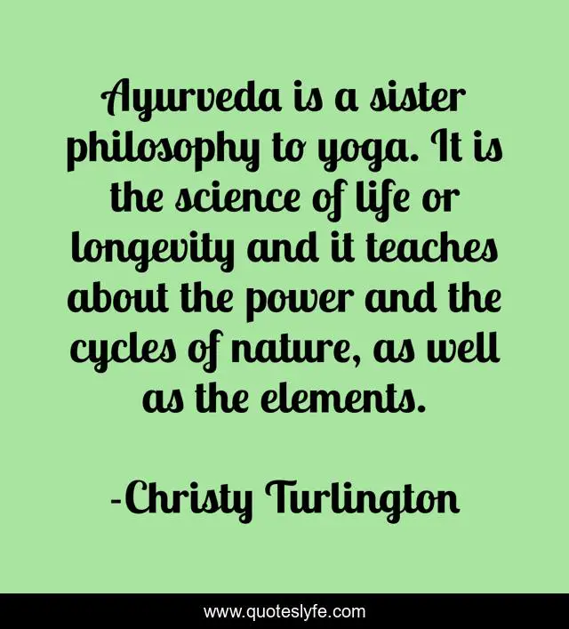 This page presents the quote "Ayurveda is a sister philosophy to yoga. It is the science of life or longevity and it teaches about the power and the cycles of nature, as well as the elements.". Author of this quote is Christy Turlington. This quote is about life, sister, nature,.