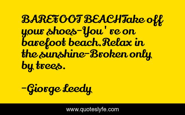 "Giorge Leedy Quotes." Quoteslyfe.com, 2025. Fri. 05 Dec. 2025. <https://www.quoteslyfe.com/quote/BAREFOOT-BEACHTake-off-your-shoes-You-re-246020>.