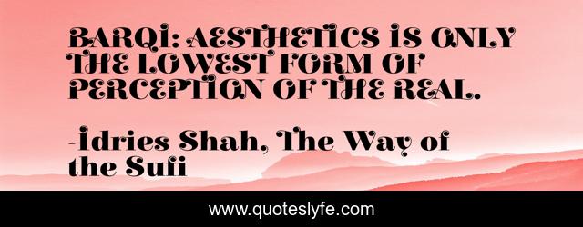 "Idries Shah, The Way of the Sufi Quotes." Quoteslyfe.com, 2025. Fri. 05 Dec. 2025. <https://www.quoteslyfe.com/quote/BARQI-AESTHETICS-IS-ONLY-THE-LOWEST-FORM-203415>.