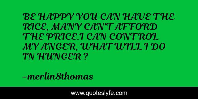 This page presents the quote "BE HAPPY YOU CAN HAVE THE RICE, MANY CAN'T AFFORD THE PRICE.I CAN CONTROL MY ANGER, WHAT WILL I DO IN HUNGER ?". Author of this quote is merlin8thomas. This quote is about control, hunger, afford, price, happy-rice, anger,.