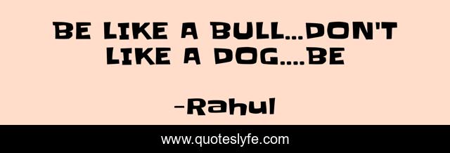 This page presents the quote "BE LIKE A BULL...DON'T LIKE A DOG....BE". Author of this quote is Rahul. This quote is about inspirational-life, enthusiasm, inspirational,.