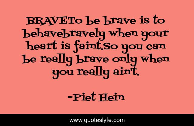 This page presents the quote "BRAVETo be brave is to behavebravely when your heart is faint.So you can be really brave only when you really ain't.". Author of this quote is Piet Hein. This quote is about fear, afraid, brave, bravery,.