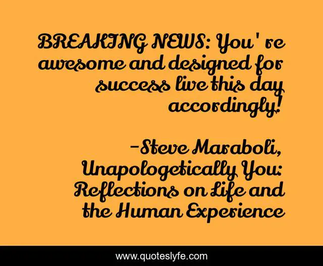 "Steve Maraboli, Unapologetically You: Reflections on Life and the Human Experience Quotes." Quoteslyfe.com, 2025. Fri. 05 Dec. 2025. <https://www.quoteslyfe.com/quote/BREAKING-NEWS-You-re-awesome-and-designed-32329>.