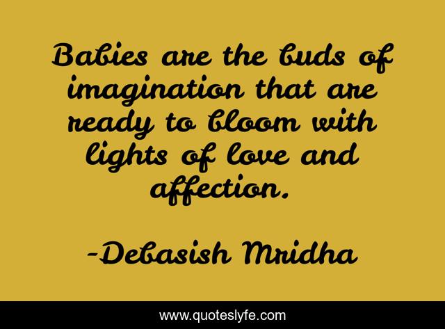 This page presents the quote "Babies are the buds of imagination that are ready to bloom with lights of love and affection.". Author of this quote is Debasish Mridha. This quote is about philosophy, love, inspirational, mridha, debasish, imagination, babies, enthusiasm, affection,.
