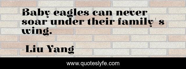 This page presents the quote "Baby eagles can never soar under their family's wing.". Author of this quote is Liu Yang. This quote is about baby, eagles, soar,.