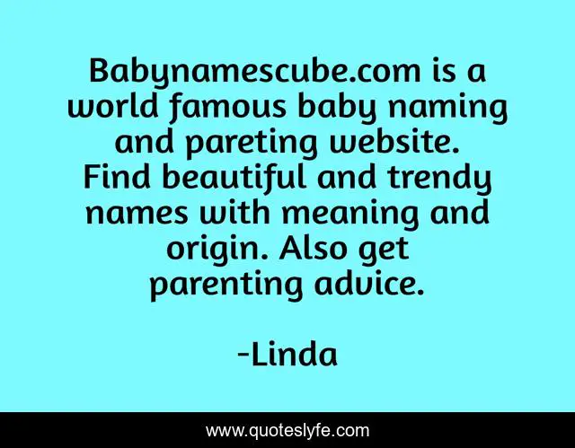 This page presents the quote "Babynamescube.com is a world famous baby naming and pareting website. Find beautiful and trendy names with meaning and origin. Also get parenting advice.". Author of this quote is Linda. This quote is about baby-names, name-meaning, parenting,.