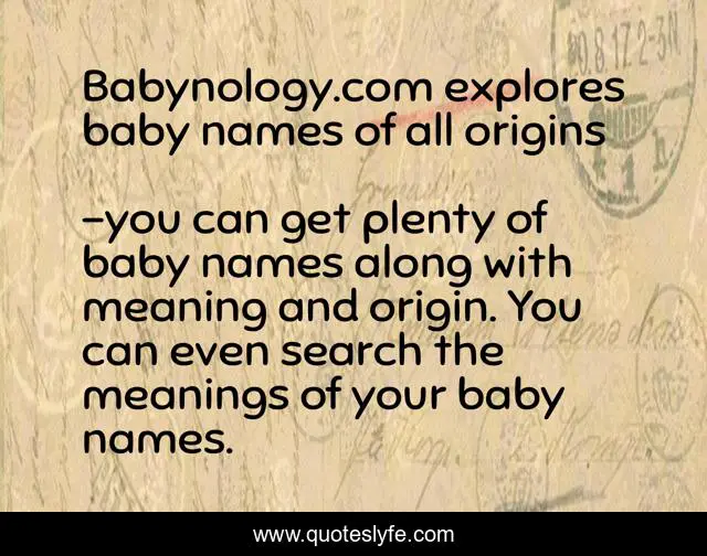 "you can get plenty of baby names along with meaning and origin. You can even search the meanings of your baby names. Quotes." Quoteslyfe.com, 2025. Sat. 06 Dec. 2025. <https://www.quoteslyfe.com/quote/Babynology-com-explores-baby-names-of-all-142347>.