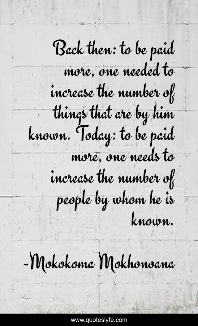 "Mokokoma Mokhonoana Quotes." Quoteslyfe.com, 2025. Mon. 08 Dec. 2025. <https://www.quoteslyfe.com/quote/Back-then-to-be-paid-more-one-225447>.