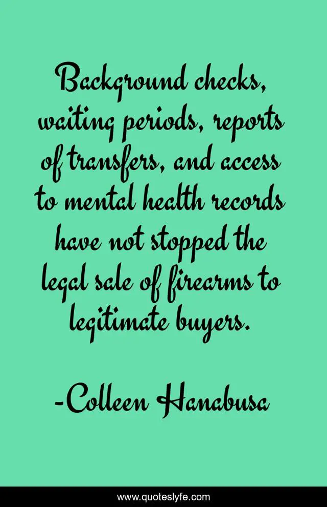 This page presents the quote "Background checks, waiting periods, reports of transfers, and access to mental health records have not stopped the legal sale of firearms to legitimate buyers.". Author of this quote is Colleen Hanabusa. This quote is about waiting, health,.