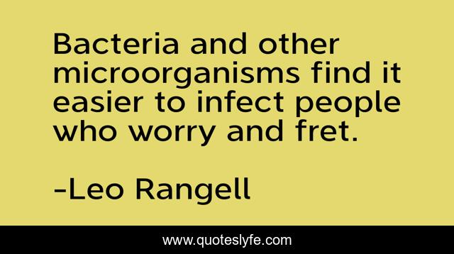 This page presents the quote "Bacteria and other microorganisms find it easier to infect people who worry and fret.". Author of this quote is Leo Rangell. .