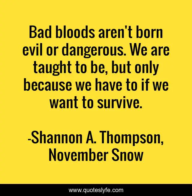 "Shannon A. Thompson, November Snow Quotes." Quoteslyfe.com, 2025. Sun. 07 Dec. 2025. <https://www.quoteslyfe.com/quote/Bad-bloods-aren-t-born-evil-or-196238>.