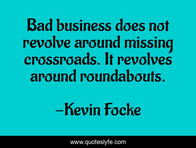 This page presents the quote "Bad business does not revolve around missing crossroads. It revolves around roundabouts.". Author of this quote is Kevin Focke. This quote is about business, innovation,.