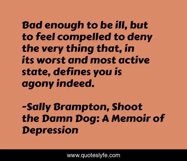 "Sally Brampton, Shoot the Damn Dog: A Memoir of Depression Quotes." Quoteslyfe.com, 2025. Fri. 05 Dec. 2025. <https://www.quoteslyfe.com/quote/Bad-enough-to-be-ill-but-to-113651>.