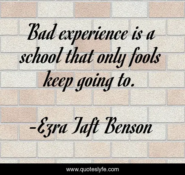 "Ezra Taft Benson Quotes." Quoteslyfe.com, 2025. Sat. 06 Dec. 2025. <https://www.quoteslyfe.com/quote/Bad-experience-is-a-school-that-only-307743>.