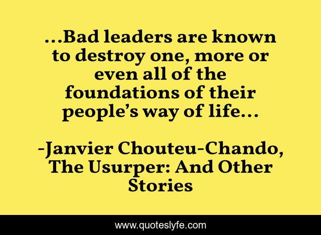 "Janvier Chouteu-Chando, The Usurper: And Other Stories Quotes." Quoteslyfe.com, 2025. Mon. 08 Dec. 2025. <https://www.quoteslyfe.com/quote/Bad-leaders-are-known-to-destroy-one-13772>.